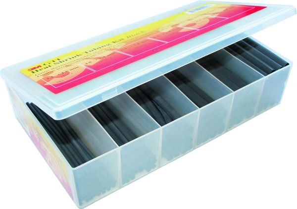 3M™ Warmschrumpfschlauch GTI ist ein flexibles RoHS-Schrumpfschlauchsortiment. Die Rohre haben eine flammgeschützte Wand aus vernetztem Polyolefin. Sie bieten zuverlässige Leistung für elektrische Spleiße, Verbindungen und Anschlüsse bis 600 V. GTI Warmschrumpfschläuche sind in vielen verschiedenen Farben und Größen mit einem Schrumpfverhältnis von 2:1 erhältlich. Dieses GTI Schrumpfschlauch-Kit wird in einer praktischen Sortierbox (Größe 270 mm x 160 mm x 60 mm) geliefert.