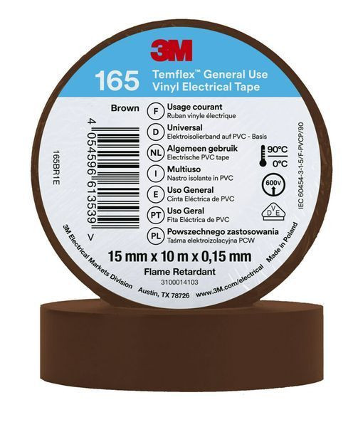 | Kurzbeschreibung | 3M™ Temflex™ Vinyl-Isolierband 165, Baun, 15 mm x 10 m |