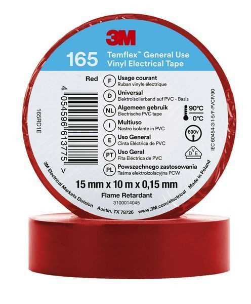 | Kurzbeschreibung | 3M™ Temflex™ Vinyl Electrical Tape 165, Red, 15 mm x 10 m, 100 Rolls/Case |