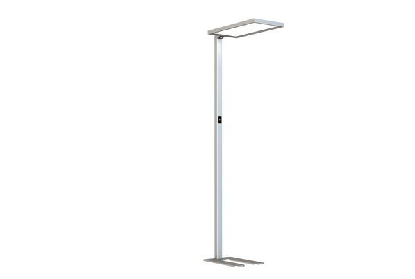 Stehleuchte, schlichtes modernes Design, bildschirmarbeitsplatztauglich und effizient mit UGR<19 und 85 lm/W, Touchdim-Panel, 5 Jahre Garantie, unten mikroprismatisch / oben opal, effiziente Leuchte in modernem Design für den gehobenen Anspruch, MSP Variante mit Präsenzmelder.