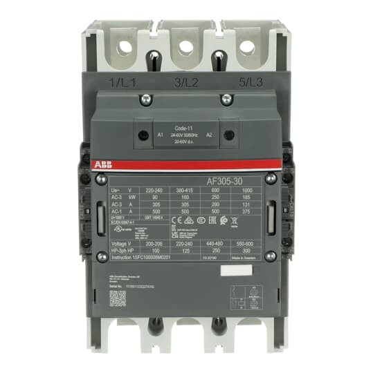 Schütze AF116 bis AF750 von 55 bis 400 kW AC-3 (400 V) stehen für die kompakte Baureihe mit AC/DC-Ansteuerung und sehr weiten Spulenspannungsbereichen. Nur 4 Spulen decken Steuerspannungen von 20...500 VDC bis 24...500 VAC ab - ohne zusätzlich erforderliche Löschglieder. Dadurch sind sie weltweit und nur in geringer Varianz einsetzbar. AF116 bis AF370 gibt es auch in direkt aus SPS ansteuerbaren Versionen, ab AF400 ist ein SPS-Eingang standardmäßig vorhanden. AF-Schütze schalten Leistungskreise mit Motoren, leicht induktiven oder nicht-induktiven Lasten. Anbaubare Zubehörteile sind bis zu 2 rechts- und linksseitig montierbare 2-polige Hilfsschalter. Alle Hilfsöffnerkontakte sind als Mirrorkontakte nach IEC60947-5-1 Anhang L ausgeführt. Weiteres Zubehör wie Klemmenabdeckungen, Verdrahtungshilfen sowie Verriegelungsglieder u.a. ergänzen das Sortiment.