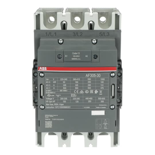 Schütze AF116 bis AF750 von 55 bis 400 kW AC-3 (400 V) stehen für die kompakte Baureihe mit AC/DC-Ansteuerung und sehr weiten Spulenspannungsbereichen. Nur 4 Spulen decken Steuerspannungen von 20...500 VDC bis 24...500 VAC ab - ohne zusätzlich erforderliche Löschglieder. Dadurch sind sie weltweit und nur in geringer Varianz einsetzbar. AF116 bis AF370 gibt es auch in direkt aus SPS ansteuerbaren Versionen, ab AF400 ist ein SPS-Eingang standardmäßig vorhanden. AF-Schütze schalten Leistungskreise mit Motoren, leicht induktiven oder nicht-induktiven Lasten. Anbaubare Zubehörteile sind bis zu 2 rechts- und linksseitig montierbare 2-polige Hilfsschalter. Alle Hilfsöffnerkontakte sind als Mirrorkontakte nach IEC60947-5-1 Anhang L ausgeführt. Weiteres Zubehör wie Klemmenabdeckungen, Verdrahtungshilfen sowie Verriegelungsglieder u.a. ergänzen das Sortiment.