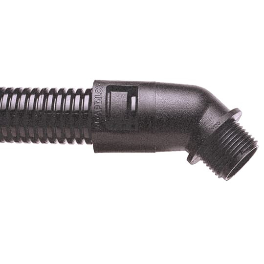 Die Verschraubung vom Typ Adaptalok AL Typ 45 ist in 45-Grad Ausführung mit festem Außengewinde. Diese besteht aus Polyamid 66 und erreicht eine Dichtigkeit von IP66 (Mit ALS Dichtung bis IP69).