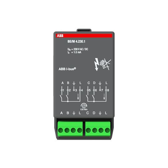 Es besitzt 4 Eingänge zum Anschluss von 230 V-Kontakten (AC oder DC).