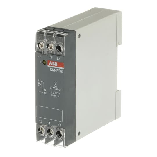 CM-PFE.2 Dreiphasenüberwachungsrelais zur Phasenfolge- und Phasenausfallüberwachung, Breite: 22,5mm, Bemessungssteuerspeisespannung = Messspannung L1-L2-L3=200-500VAC, Versorgung durch den Messkreis, 1 Wechsler (Ruhestromprinzip).