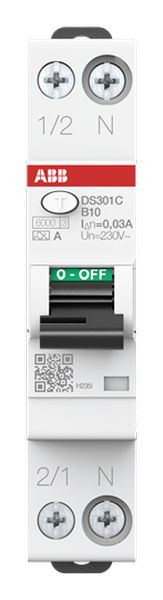 RCBO DS301C A Typ A ist 1-polig geschützt (LS), 2-polig schaltend.