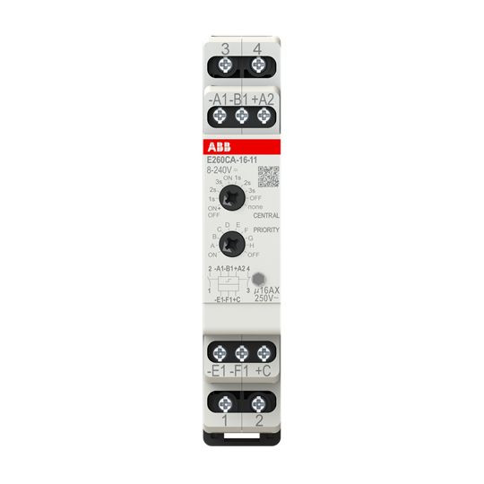 Die elektronische Version der Stromstoßrelais mit universeller Steuerspannung von 8 bis 240 V UC garantiert maximale Zuverlässigkeit, Lebensdauer und geräuschlosen Betrieb. Die Variante E260C verfügt über eine integrierte Zentralsteuerfunktion (EIN/AUS), die bei den Gerätetypen E260CA ebenfalls einstellbar ist.