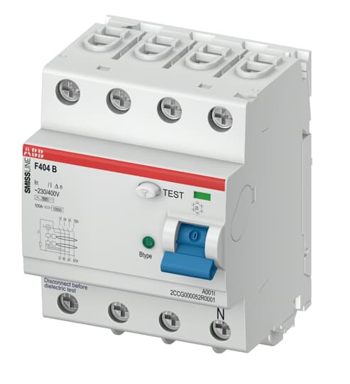 Fehlerstrom-Schutzschalter (RCCBs) der Baureihe F400 Typ B für glatte Gleichfehlerströme und Betriebssicherheit, allstromsensitiv, 10 ms kurzzeitverzögert, stoßstromfest 3 kA.