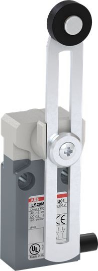 LS20M51B11-U01 ist ein 30 mm breiter, kompakter Positionsschalter aus Zinklegierungsmaterial (Zamak), mit 2 Befestigungsbohrungen M4 oben, einem vorverdrahteten UL62 - PVC-Kabel (1 m) an der Seite, einem abgeflachten Stahl-Rollendruckbolzen sowie 1 Öffner + 1 Schließer als Sprungkontakt