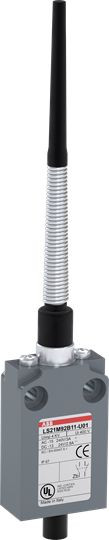LS21M92B11-U01 ist ein 30 mm breiter, kompakter Positionsschalter aus Zinklegierungsmaterial (Zamak), mit 2 Befestigungsbohrungen M4 oben, einem vorverdrahteten UL62 - PVC-Kabel (1 m) an der Seite, einem abgeflachten, elastischen Stab mit isoliertem Endstück sowie 1 Öffner + 1 Schließer als Sprungkontakt