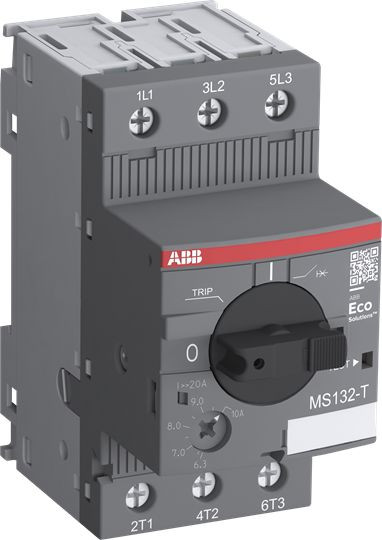 Transformatorschutzschalter MS132-T mit thermischem und elektromagnetischem Schutz steht für die kompakte und leistungsstarke Baureihe mit hohem Kurzschlussausschaltvermögen für den Transformatorschutz bis 25 A mit einer Modulbreite von 45 mm. Bei diesem Gerät wird der primärseitige Transformatornennstrom durch Einstellen an der Stromskala thermisch überwacht. Die Kurzschlussauslösung erfolgt bei Auftreten des 20-fachen Gerätenennstroms. Das temperaturkompensierte Gerät hat eine Drehgriffbedienung mit einer klaren Schaltstellungsanzeige I/TRIP/0. Darüber hinaus verfügt MS132-T über eine Kurzschlussanzeige. Der Drehgriff ist mit Hilfe eines Vorhängeschlosses in 0-Position direkt verriegelbar. Hilfs-, Signal- und Kurschlussmeldekontakte sowie Unterspannungs- und Arbeitsstromauslöser können ohne Werkzeug angebaut werden. 1-Phaseneinspeiseblöcke bis 25 mm² und Phasenverbinder unterstützen die Verdrahtung von 1-Phasentransformatoren.