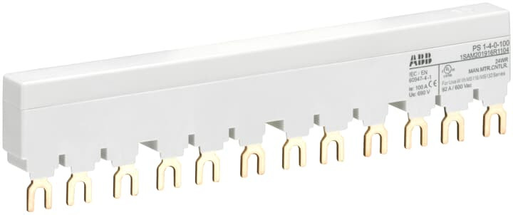 3-Phasen-Sammelschienen PS1 dienen der Paralleleinspeisung mehrerer Motorschutzschalter MS116/132/MO132 mit 0, 1 oder 2 seitlichen Anbauteilen von 9mm Baubreite
