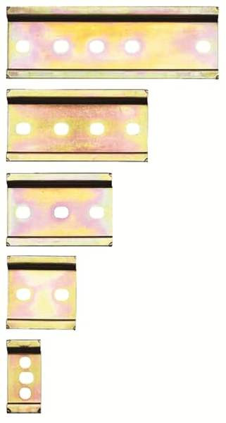 DIN-Schienen (DIN EN 60 715 – 35 x 7,5 mm) für Einzelmontage mit 2 Schrauben auf ebener Fläche (1 Modul = 17,5mm)