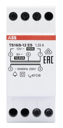 Transformatoren der Baureihe TS zur Versorgung mit Kleinspannung (SELV), geeignet für Lasten, die eine kurzzeitige Versorgung erfordern, insbesondere Türklingeln und Glockenspiele. Neben einer perfekten Isolation und Trennung zwischen Primär- und Sekundärkreis haben die TS-Transformatoren eine thermische Schutzeinrichtung im Sekundärteil integriert, die sie resistent gegen Kurzschlussströme macht (bedingt kurzschlussfest). Sie sind mit einer Wärmeschutzvorrichtung ausgestattet, die automatisch den Betrieb wieder herstellt, wenn der Transformator ausreichend abgekühlt ist oder die Überlast beseitigt wurde. Die Klingeltrafos der Baureihe ...ES zeichnen sich durch einen um 50 % reduzierten Energieverbrauch im Leerlaufbetrieb aus.