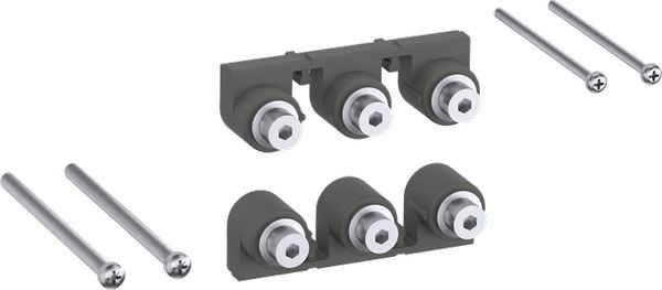 Für den Anschluss der Klemmen: 6 Stück M10-Schrauben mit Unterlegscheiben und 2 Stück Anschlussbuchsen mit jeweils 3 vorinstallierten M10-Muttern.