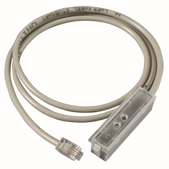 Datensensor (OKK: Optischer Kommunikationskopf), mit Leitung zum Einsetzen in die BKE zur Verbindung der Datenschnittstelle des eHZ mit Kommunikationsgeräten, Übertragungsrate 9600 Baud, Stecker RJ10-4P4C, Leitungslänge 400 mm.