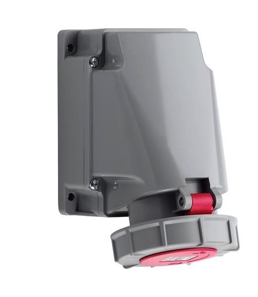 CEE Wandsteckdose, nach VDE 0623, EN 60309 Teil 1/2, IEC 60309, Schutzart wasserdicht IP67, Nennstrom 63A, 4-polig, Nennspannung 230V AC, 9h, blau, HighPower-Ausführung, mit Pilotkontakt, Schraubklemmen, Leitungseinführung oben, unten oder hinten, Gehäuse um 180° drehbar, 1 x M40 oben, 2 x M32 unten, Neigung 15°