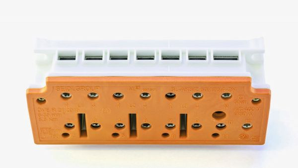 Zähleranschlussklemme für Dauerstromanwendungen bis 100 A, 3-phasiger Anschluss mit je 2 Anschlussklemmen und Neutralleiteranschluss für Leitungsquerschnitte von 6 - 35 mm², ohne Tarifanschlussklemmen (Spannungsabgriffe), unterbrechungsfreier Wechsel von Energiezählern ist schnell und sicher möglich, geprüft und zertifiziert nach DIN VDE 0603-3-3