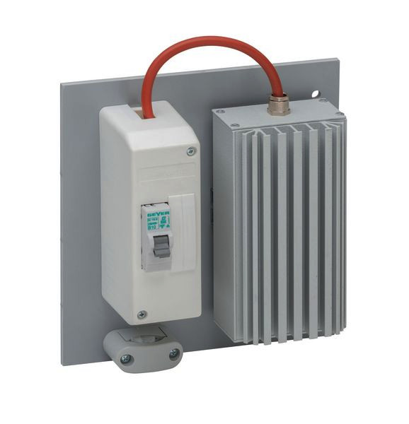 Schrankheizung in Sockel/KVS bestehend aus: Schaltschrankheizung 33W mit integriertem Thermostat,Sicherungsautomat B10A 25kA im Gehäuse, System Geyer