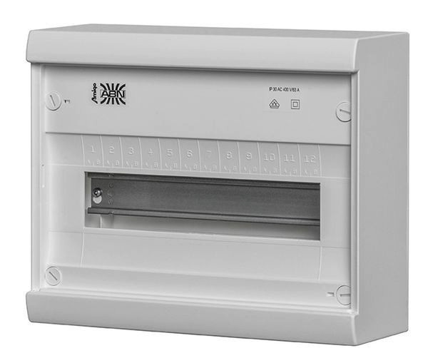 Aufputz-Kleinverteiler,ohne Tür,mit Steckklemmen,N+PE je 3 x2,5-16 + 14 x1,5-4mm²,Abmessungen BxHxT (mm) 300 x245 x106,TE je 18mm 12/14,Reihen 1,Aufputz-Kleinverteiler,ohne Tür,Schutzart: IP30,Für Geräte bis 63A,Verteiler-BodenplatteAus Kunststoff,serienmäßig mit Fixierung für die Zu- undAbgangsleitungen sowie Vorprägungen für rückseitige und seitliche Leitungseinführungen,Vorprägungen für Kabelkanäle,Gerätereihen für 12 TE (auf 14 TE erweiterbar),Farbton: RAL 9016 (verkehrsweiß),Gebaut nach DIN VDE 0603-1,DIN 43871,PE/N-Klemme mit +,-Schrauben,berührungssicher,mit montagefreundlicher Verrastung des PE+N-Trägers,Ab 2-reihigerAusführung mit zusätzlicher FI-N-Klemme,Für Einbaugeräte von 51 bis 68mm,MitAbgesenkter Gerätetragschiene (Zubehör)Auch Einbaugeräte bis 88mm einsetzbar,VolltürAls optionales Zubehör,Volltüren:Aus Stahlblech,pulverbeschichtet,Serienmäßig mit Türbetätigung durch flächenbündigen Designer-Griff,zurückklappend,Türöffnungswinkel über 180grad,Türanschlag wahlweise rechts oder links,Farbton: RAL 9016,verkehrsweiß,