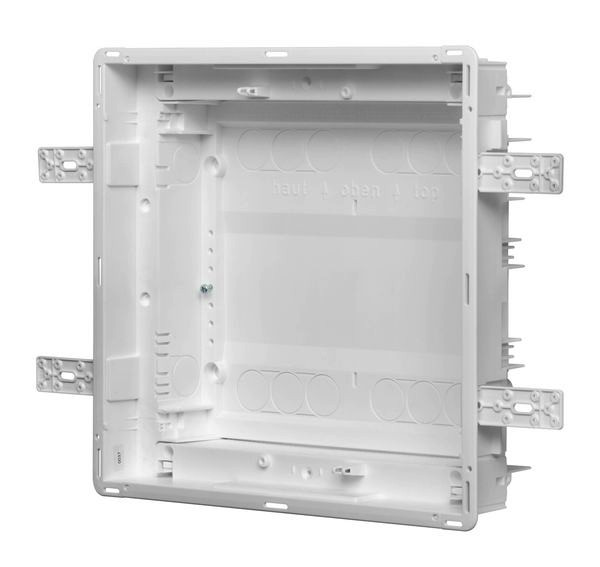 Mauerkasten UP,Nischenmaße BxHxT (mm) 330 x310x90,TE je 18mm 12,Reihen 1,Mauerkasten,Schutzisoliert II,Schutzart: IP30,Für Geräte bis 63?A,Einfachster Türanschlagwechsel ohne Demontage des Blendrahmens,Flacher Türverschluss mit Schnapptechnik,EinfachesAustauschen gegen ein Schloss,Geeignet für Einbaugeräte bis 70mm Tiefe,Farbton: RAL 9016 (verkehrsweiß),Gebaut nach DIN VDE 0603-1,DIN 43871,Mauerkasten:,MauerkastenAus Kunststoff,Befestigungshaken (HW),Nagellaschen (UP),Putzschutzplatte,Einbauset:,Traggerüst mit Gerätetragschiene,Geräteabdeckung,Blendrahmen mit Volltür und Putzausgleich,N/PE-Steckklemmen,N-FI-Erweiterungsklemme (in 2-,3- und 4-reihigen Verteiler),Stromkreisbeschriftungen und Blatt mit Piktogrammen,