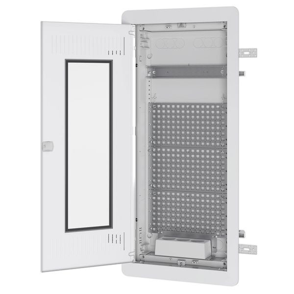 | Kurzbeschreibung | AMIGO Multimedia-Kleinverteiler, 4-reihig, UP/HW mit Mediatür, BxHxT: 310x695x88mm LexCom |