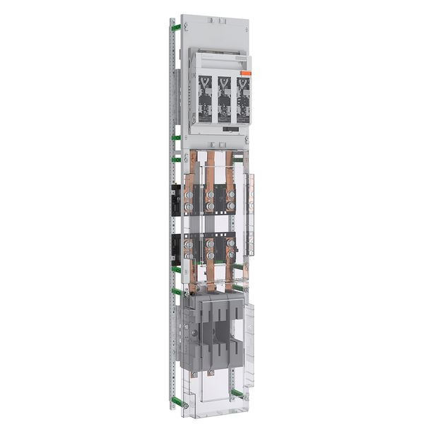 Wandlerfeld 250 A Dauerstrom bestehend aus: 1x NAR mit NH2 Unterteil mit Klarsichtabdeckung und N/PE Anschluss, 1x Wandlermodul BxH 250x450 mm mit Klarsichtabdeckung für Wandlerlaschen Bauform A mit 30 mm Breite, 1x AAR mit NH2 Trenner und N/PE Anschluss