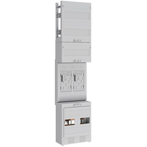 Zählerplatz bestehend aus: 2x eHZ-Kassette mit OKK und 5-poliger Hauptleitungsabzweigklemme, Sammelschienensystem 5-polig in Doppelkupfer für 355A, 6x Anschlussklemmen 16 mm²