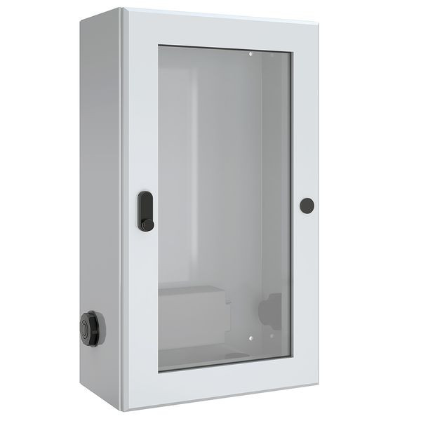 Kunststoff Zählerschrank E 700/400 D1 bestehend aus: Schrank mit Tür mit Vollsicht-Sicherheitsscheibe, untere Prüfklemme TAB Stromnetze Bonn, ohne Zählertafel, 700 x 400 x 225 mm