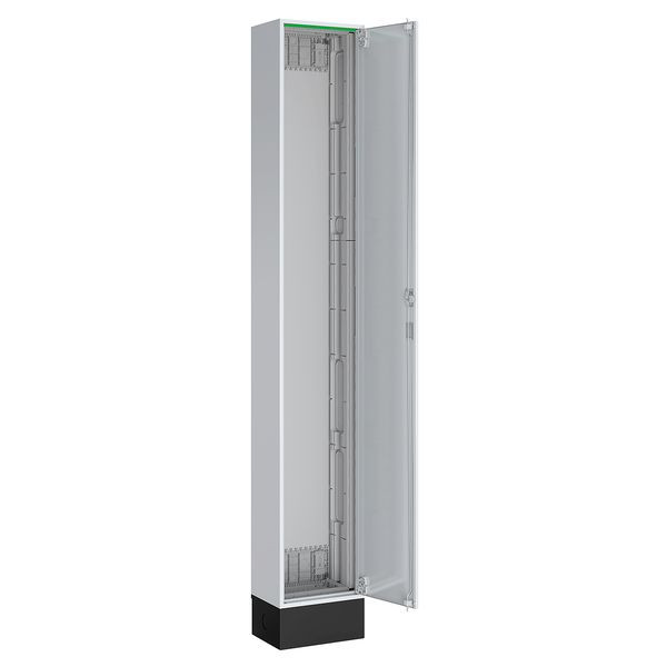 Systemgehäuse für Standmontage, bestehend aus: Leergehäuse mit flächenbündiger Leitungsmembran, Abmessungen: 300x1980x210 mm, Volltür, Schutzklasse II (schutzisoliert), Schutzart IP44, Stahlblech pulverbeschichtet