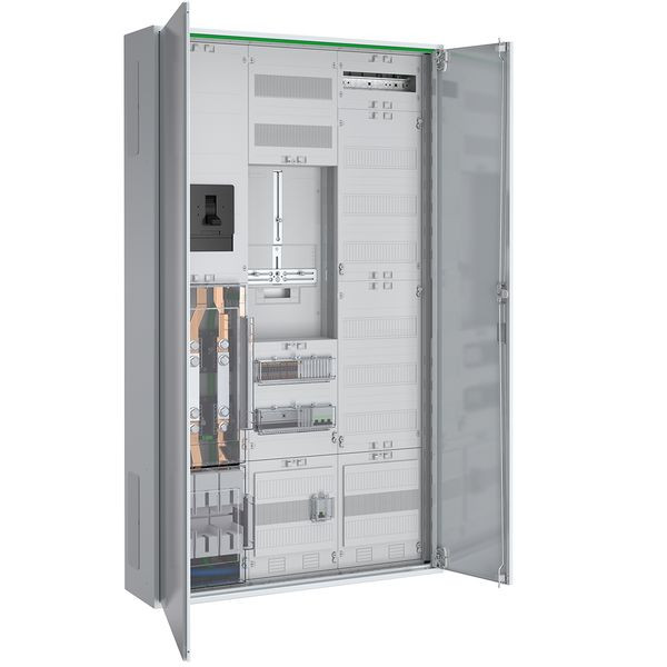 Wandlermessschrank 250 A Dauerstrom nach TAB Standwerke München bestehend aus: Zählerschrank schutzisoliert in IP44, 3x NAR mit 40 mm Sammelschiene 2x12x5 mm bestückt mit NH2 Unterteil mit Klarsichtabdeckung und N/PE Anschluss, 4x Sammelschienenklemme 185 mm², 1x Sammelschienenklemme 120 mm², Steuersicherung 1x LS 1p B10 25kA, 1x Wandlermodul BxH 250x450 mm mit Klarsichtabdeckung, 3x Wandlerlasche Bauform A mit 30x5x170 mm, 1x AAR mit Lasttrennschalter 3-polig 400 A und Klemme für N und PE, 1x Wandlerzusatzraum BxH 250x300 mm 24 TE bestückt mit Spannungspfadsicherungen 3x LS 1p B10 25kA und Wandler-Trennklemmen nach TAB SWM, 1x 3-Punkt Zählerplatz 450 mm, 1x 3-Punkt FRE-Platz 450 mm, Kommunikations-/Verteilerfeld nach TAB SWM inkl. 7-poliger Steuerleitungsklemmen und RJ45 Schnittstellen