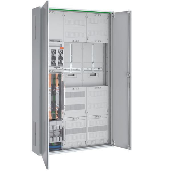 Wandlermessschrank 250 A Dauerstrom nach TAB E.Dis bestehend aus: Zählerschrank Schutzisoliert IP44, 3x NAR mit 40 mm Sammelschiene 2x12x5 mm bestückt mit NH2 Unterteil mit Klarsichtabdeckung und N/PE Anschluss, 4x Sammelschienenklemme 185 mm², 1x Sammelschienenklemme 120 mm², 1x Wandlermodul BxH 250x450 mm mit Klarsichtabdeckung, 3x Wandlerlasche Bauform A mit 30x5x170 mm 1x AAR mit NH2 Trenner und Klemme für N und PE, 1x Wandlerzusatzraum BxH 250x300 mm 12 TE bestückt mit Spannungspfadsicherungen 1x LS 3p B6A 25kA, Steuersicherung 1x LS 1p B6A 25kA und Wandler-Trennklemmen nach TAB NS Nord 14-polig, 1x 3-Punkt Zählerplatz 450 mm, 1x 3-Punkt FRE-Platz 450 mm, 1x APZ-Raum 300 mm mit RJ45 Schnittstelle