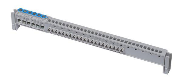 PE- und N-Klemmen mit Träger fürAMIGO-KleinverteilerAufputz,3- und 4-reihig,mit je 27 Steckklemmen für N,PE- und N-Klemmen mit Träger,