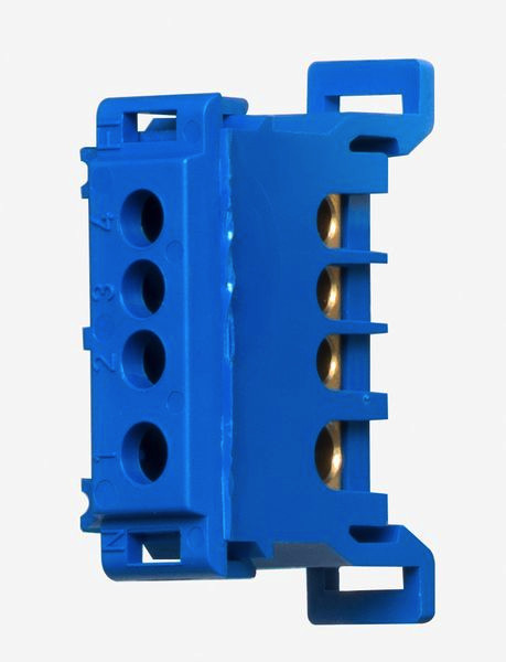 | Kurzbeschreibung | FI-N-Klemme blau, UP/HW Schraubanschluss 1 x 16 und 3 x 10 qmm |
