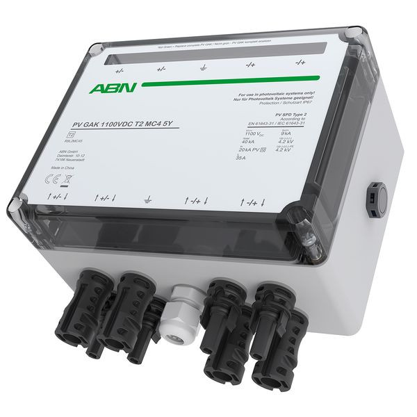 Generatoranschlusskasten (GAK) für Wechselrichter mit 2 MPPTracker, Schutz der DC-Seite mittels integrierten Überspannungsableiter Typ 2, Anschluss mittels MC4 Steckvebinder, IP67, Ucpv = 1100V, In/Imax =20kA/40kA, Up=<4,2kV