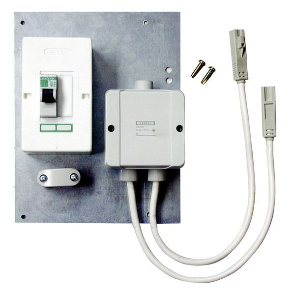 Anschlussdose für Rohrbegleitheizung bestehendAus:Anschlussdose mit 2xSteckbuchsen,Absicherung und Zugentlastung montiertAuf die Montageplatte inklusive Befestigungsmaterial