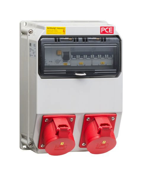 Steckdosenkombination bestehendAus: 1xCEE 32A 5-polig 400 V,1xCEE 16A 5-polig 400 V,mitAbsicherung 1xLS C32A 3polig,1xLS C16A 3-polig,1xFi-40/0,03A 4-polig