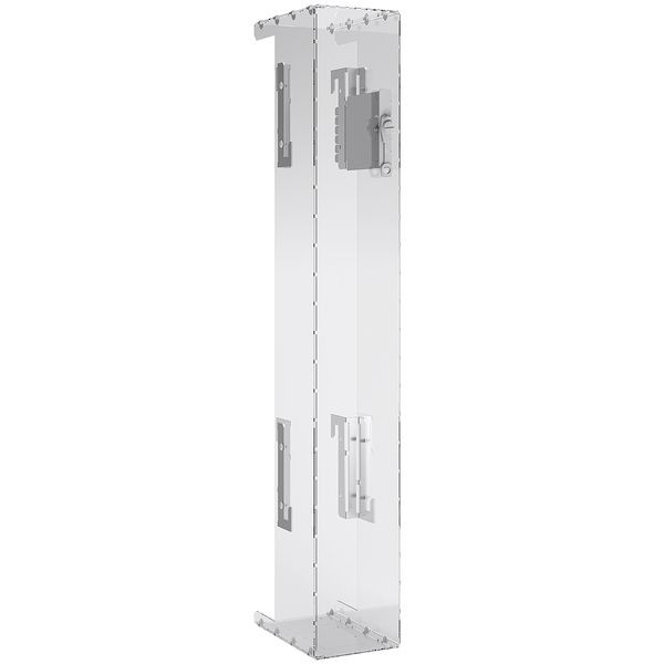Berührschutzabdeckung zur Montage im Strom im Freien Wandlerschrank auf 185mm Sammelschiene, positionsunabhänig, mit Plombiermöglichkeit, zur Nutzung als Leerplatzabdeckung oder als Anschlussabdeckung bei Direktanschluss an die Sammelschiene, Breite 99 mm