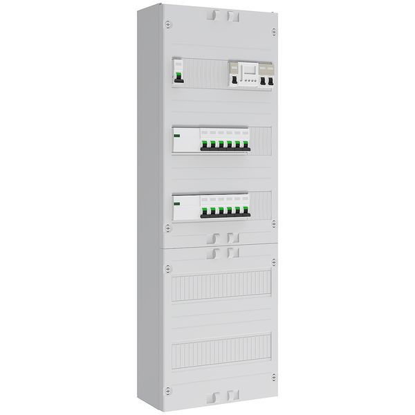 Verteilerfeld für Straßenbeleuchtungssäule bestehendAus: 1xVerteilerfeld 5-reihig in tiefer Bauform mit seitlichen Schottungen,1xBestückungspaket verdrahtetAuf Reihenklemmen bestehendAus: 12xLeitungsschutzschalter B 16A,2xInstallationsschütz 63A 4S,1xLeitungsschutzschalter B 10A,1xDämmerungsschalter 1S,1xdigi,Zeitschaltuhr 1C 24/7,2xGruppenschalter 20A 3 Position,12xTrennklemmen 10mm²,1xHauptleitungsabzweigklemme 5-polig und 3xAnschlussklemmen