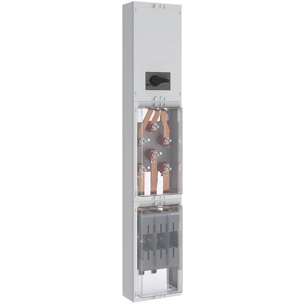 Wandlerfeld für 200A Dauerstrom bestehendAus: 1xNAR mit NH2 Unterteil mit Klarsichtabdeckung und N/PEAnschluss,1xWandlermodul 450mm für Wandlerlaschen BauformA mit 30mm Breite,1xAAR Lasttrennschalter 3-polig 250A und Klemme für N und PE