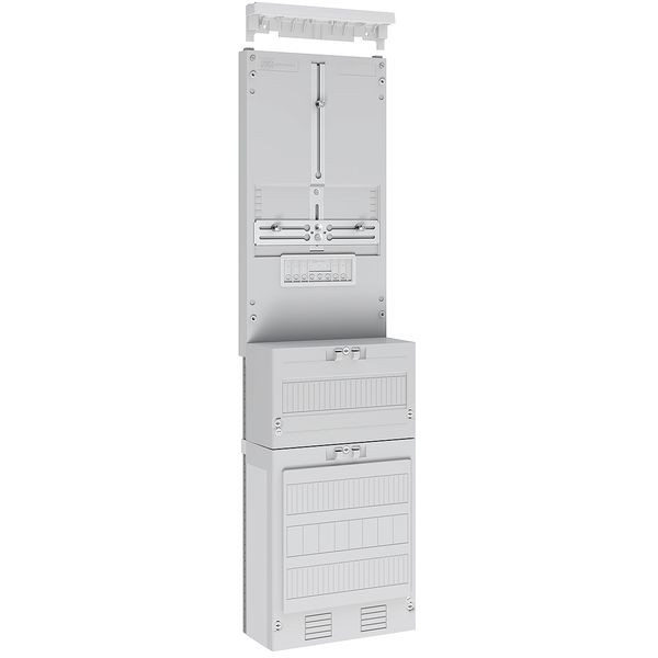bestehendAus: Zähler-/Steuergeräteplatz,H xB (mm): 450 x250: 3-Punkt mit Dichtmembrane,ohne Verdrahtung,Vorbereitet für eine IP54-Klarsichtabdeckung,NetzseitigerAnschlussraum (NAR),H xB (mm): 150 x250: Mit perforierter 3-Punkt-Haube und Gerätetragschiene,ohne Gerätebestückung,APZ-Raum (unten),H xB (mm): 300 x250: Mit LexCom Home-Mediamontageplatte und Gerätetragschiene,ohne Gerätebestückung