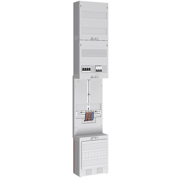 Zählerplatz bestehend aus: 1x 3-Punkt-Befestigung mit Hauptschalter, Sammelschienensystem 5-polig, 5x Anschlussklemmen 16 mm², kein Zählerreserveplatz, für Überschusseinspeisung