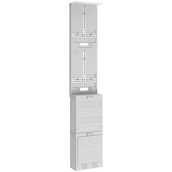 Mess-Feld bestehendAus: 1x3-Punkt Zählerplatz 375mm,1xFRE-Platz 375mm 3-Punkt,1xWandlerzusatzraum 300mm 24 TE,1xNAR mit 40mm Sammelschiene 2x12x5mm,Schottung für Feldabschluss oben