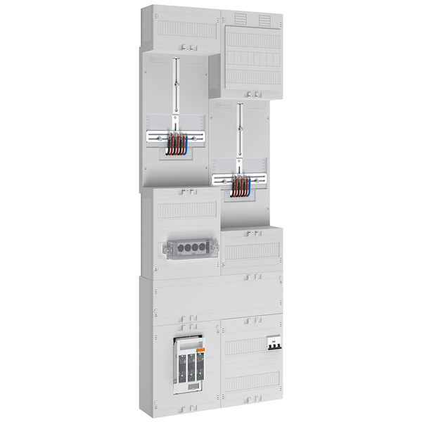 Zähler-Wandlerfeld 200A nach TAB Mitteldeutschland bestehendAus: 1xNAR mit 40mm Sammelschiene 12x5mm bestückt mit NH00 Trenner,5xSammelschienenklemme 35mm²,1xWandlermodul BxH 450x250mm für Wandlerlaschen BauformA mit 30mm Breite,1xAAR mit Lasttrennschalter und N/PEAnschluss,1xAAR Lasttrennschalter 3-polig 125A und Klemme für N und PE,1xWandlerzusatzraum 2x300mm 48 TE bestückt mit Spannungspfadsicherungen und Wandler-Trennklemmen,1x3-Punkt Zählerplatz 450mm,1xFRE-Platz 450mm 3-Punkt,1xAPZ-Raum 300mm mit RJ45 Schnittstelle