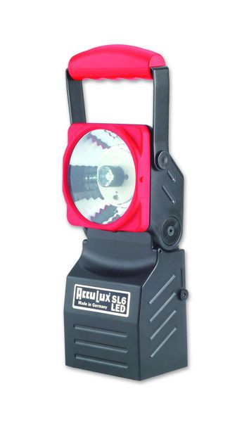 AccuLux SL 6 LED Leuchte (Art.Nr. 456530, schwarz/rot) Superlicht durch ausfallsichere 3 W PowerLED als Hauptlicht; kein Lampenwechsel mehr; Handscheinwerfer ohne Ladestation; Schutzart IP 54 (Leuchte); Blinklichtfunktion; sehr leicht: nur ca. 1100g; Leuchtenkopf 110° schwenkbar; Akku-Kapazitätsanzeige