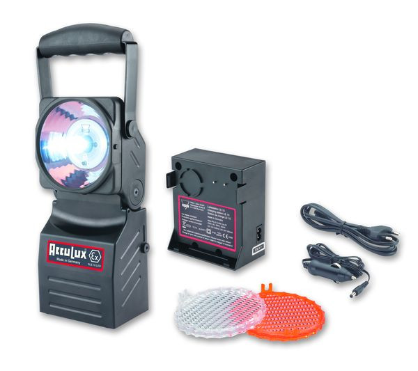 AccuLux EX SLE 16 LED Set, inkl. Ladestation / (Art.Nr. 457183s schwarz) mit Linsenfokus. ATEX-geprüfter Handscheinwerfer ohne Notlichtfunktion für den Einsatz in gas- und staubexplosionsgefährdeten Bereichen der Ex-Zonen 1, 2, 21 und 22; separates Ladeteil: in Gebäuden oder Fahrzeugen montierbar; extrem helle und ausfallsichere 3W-PowerLED als Hauptlicht, d.h. kein Lampenwechsel mehr! Schutzart IP 64 (Leuchte); sehr leicht: nur ca. 1100 g; Leuchtenkopf 110° schwenkbar; Akku-Kapazitätsanzeige;