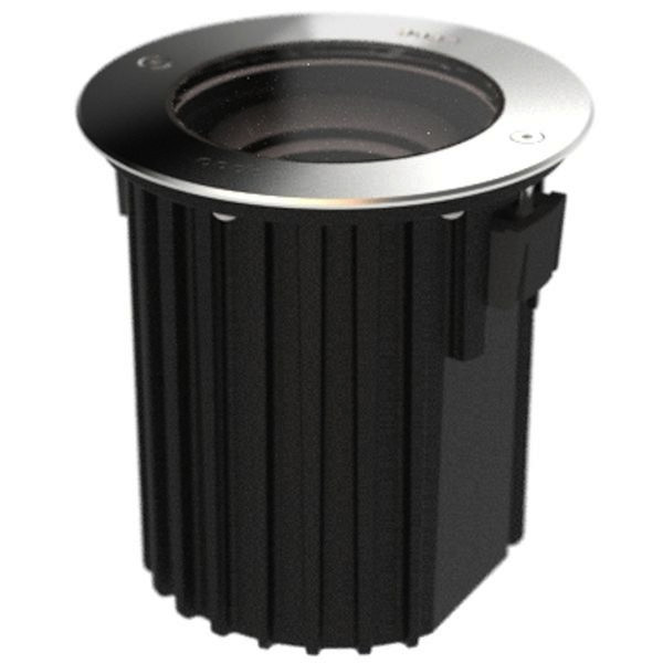 Plaza R is an architectural floor recessed luminaire delivering Total luminous flux: 1993 lm with Colour rendering Ra > 80, colour temperature 3000 K LEDs. Plaza R is rated to IP67. Luminaire is supplied with an optic providing super narrow beam distribution and a stainless steel brushed bezel. Luminaire utilizes 24w of power and efficacy of Luminaire efficacy: 83 lm/W. Designed to LM80 standards with 50000h lifetime and lumen maintenance at 70%. The fitting is of Dimensions: Durchmesser 195 x 202 mm and weight: 4.5 kg. The product is designed to be installed in ambient temperature: -20°C to +50°C.