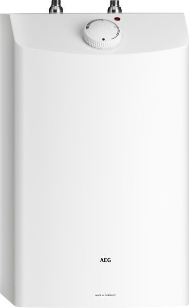 Geschlossener Kleinspeicher DKu 10, 10 l Untertisch. Warmwasserspeicher, 10 Liter Inhalt. Geschlossener Innenbehälter, 6 bar,. Außenmantel weißer Kunststoff. Wärmedämmung aus Polyurethan- Hartschaum. Temperaturwählregler stufenlos von ca. 35 °C bis 82 °C einstellbar. Temperaturwahlbegrenzung auf 45°C, 55°C, 65°C. Sicherheitstemperaturbegrenzer, Signallampe. Separate Wandbügel. Qualitäts- und Sicherheitszeichen: CE-Zeichen, VDE-/ GS-Zeichen, Funkschutzzeichen / EMV, DIN AGI.