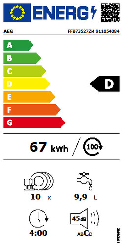 | Energieeffizienzklasse Geschirrspüler (2019/2017/EU) | D |