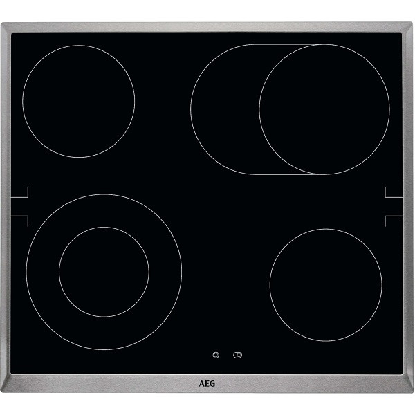 Glaskeramik-Kochfeld HE604062XB: 4 schnellaufglühende Kochzonen, davon 1 Zweikeis-Kochzone, 1 ovale Mehrzweck-Kochzone, Restwärmeanzeige für alle Kochzonen, Ansteuerung über Touch-Control-Berührungssensor, OptiFit Frame - Edelstahlrahmen,